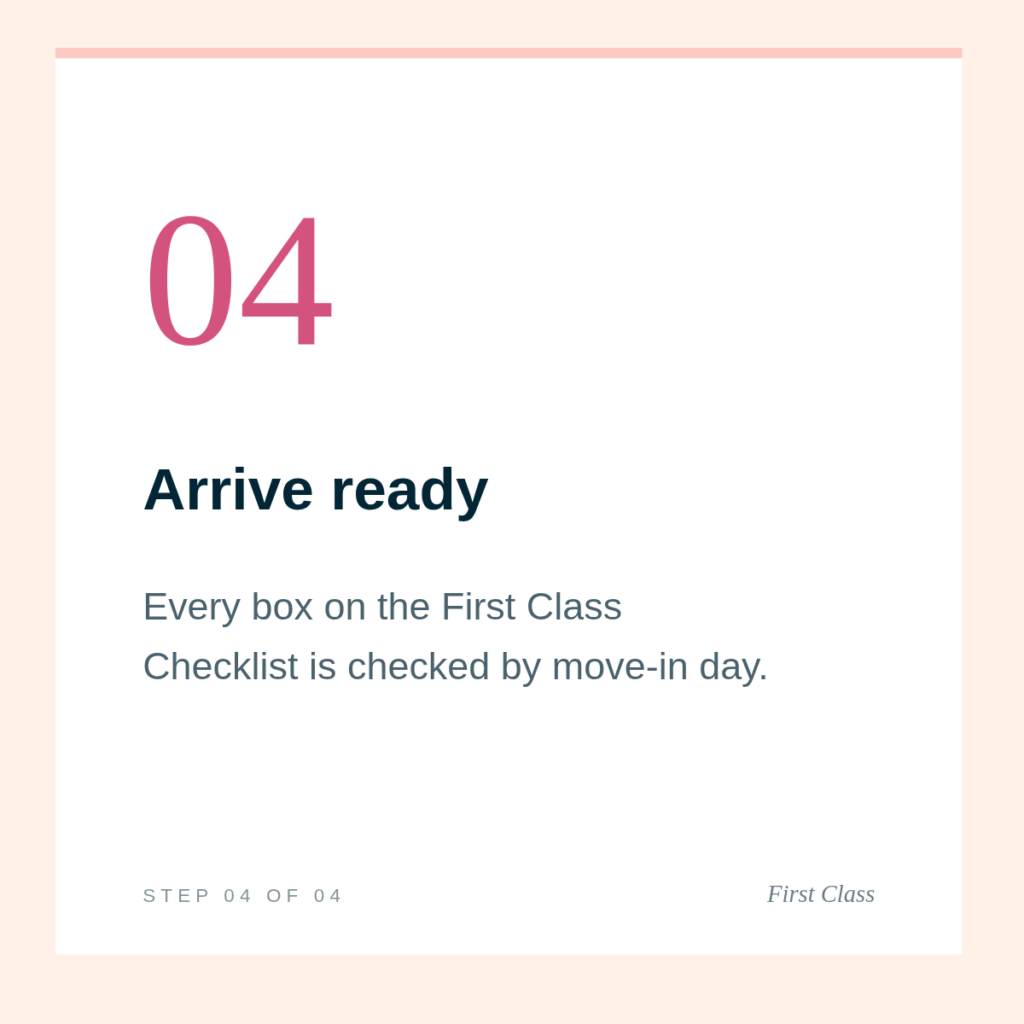 Over four weeks, your rising college freshman will complete every form, set up every system, and build the skills they need before move-in day, taught personally by Mary Miele. This process is grounded in two decades of experience preparing students for the country’s most selective schools.